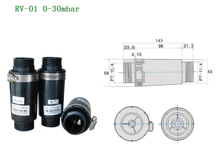 b、RV-01系列释压阀调适值为0-300mbar,RV-02系列释压阀的压力调适值为0-600mbar.
